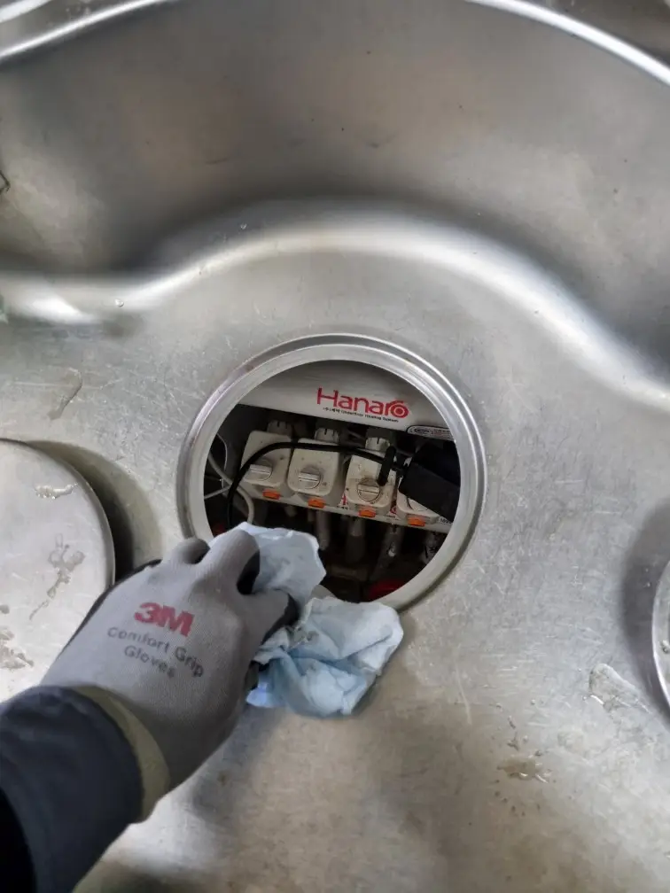 교체 전에는 하부에 물이 떨어질 수 있으니 수건이나 통을 준비하고, 배수구통과 연결된 부위를 분리합니다. 고정 너트를 풀어 기존 배수구통을 빼낸 뒤, 배수구 주변의 찌꺼기와 오래된 실리콘을 닦아냅니다.